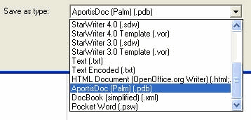Grafik17 OpenOffice.org erlaubt es Anwendern, OpenOffice.org-Dokumente in so beliebte Formate wie DocBook sowie verschiedene Formate kleinerer PDAs wie etwa AportisDoc zu exportieren. Dies ermöglicht den Transport der Dokumente auf den kleinen Palm Pilots bzw. Pocket PC PDAs.